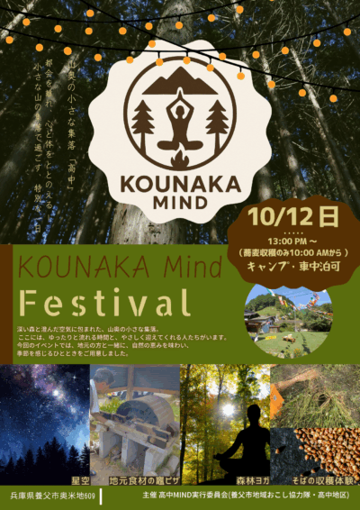 【10月12日(日)】KOUNAKA Mind Festival【リフレッシュイベント】