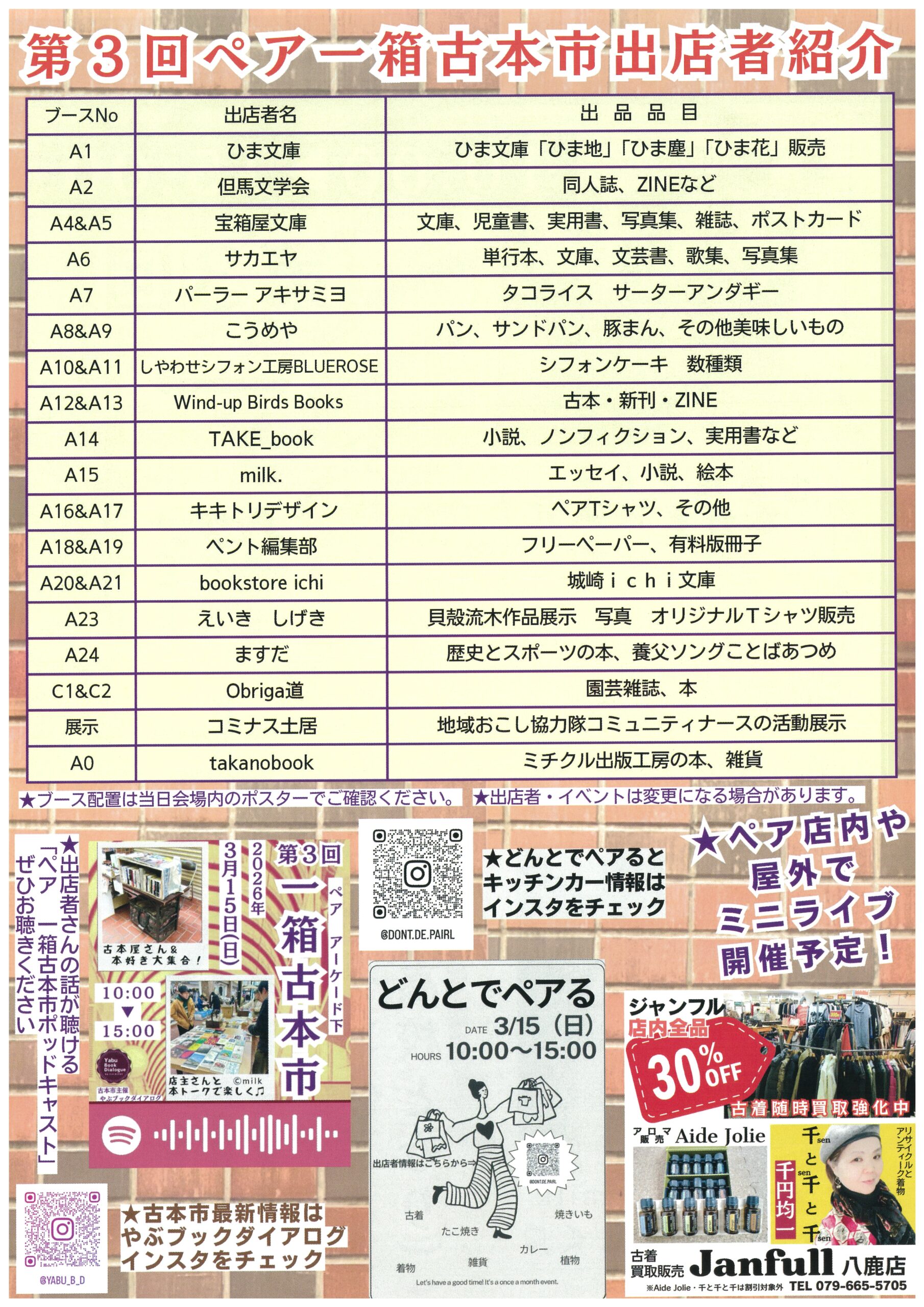 会場となるショッピングタウン・ペアには、個性豊かな出店者がずらりと並び、古本はもちろん、ZINE、エッセイ、写真集、雑貨、パンやスイーツなど、多彩な“好き”が詰まったブースが勢ぞろいします。