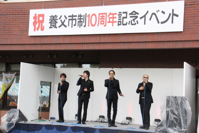 平成16年4月に養父郡4町が合併し、養父市が誕生してから10年。それを記念して『養父市制10周年記念式典』が開催されました。宮城県塩竈市よりマグロ解体ショー&ふるまいや、明石市からは明石たまご焼き(明石焼)の販売や餅まき、ボイスパーカッション、アカペラなどのLIVEを有名DJが進行して会場を盛り上げてくれました。最後は、市民皆さんと一緒に今後の養父市の良き未来を願ってバルーンリリースが行われました。